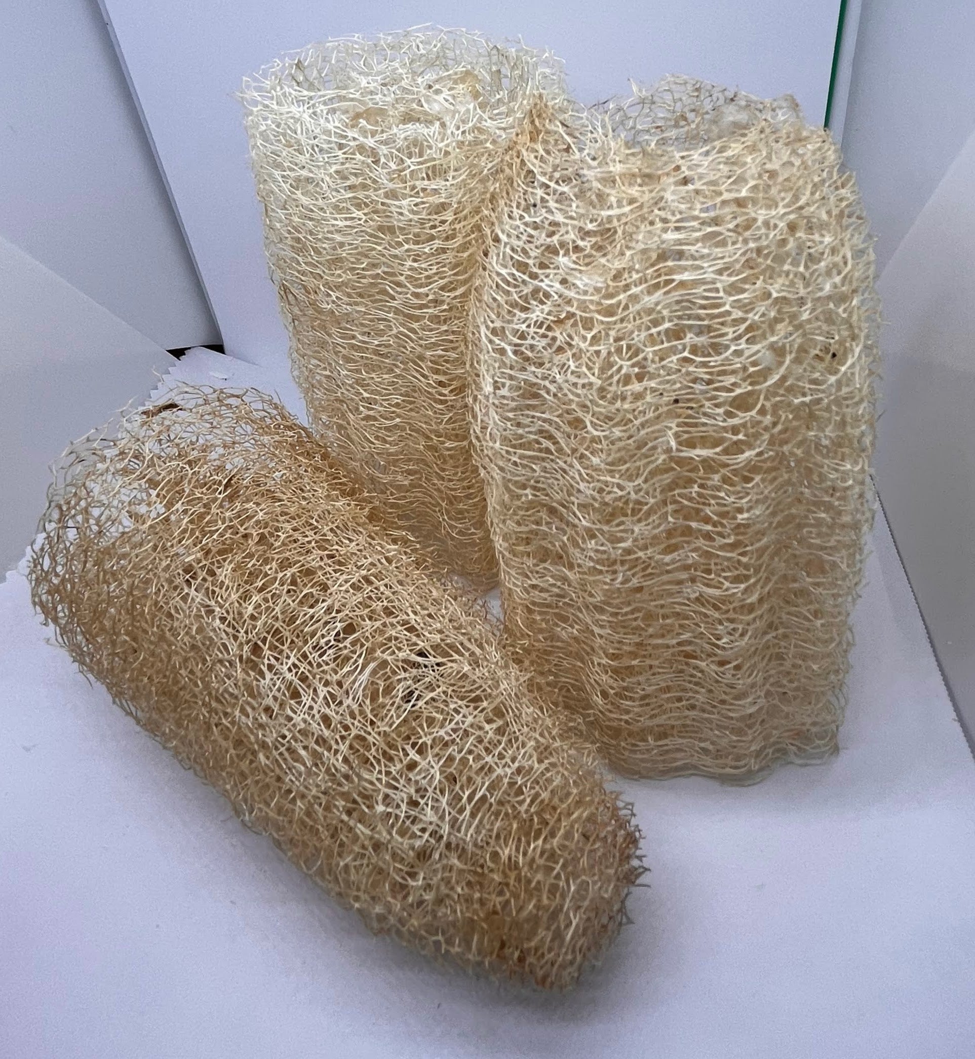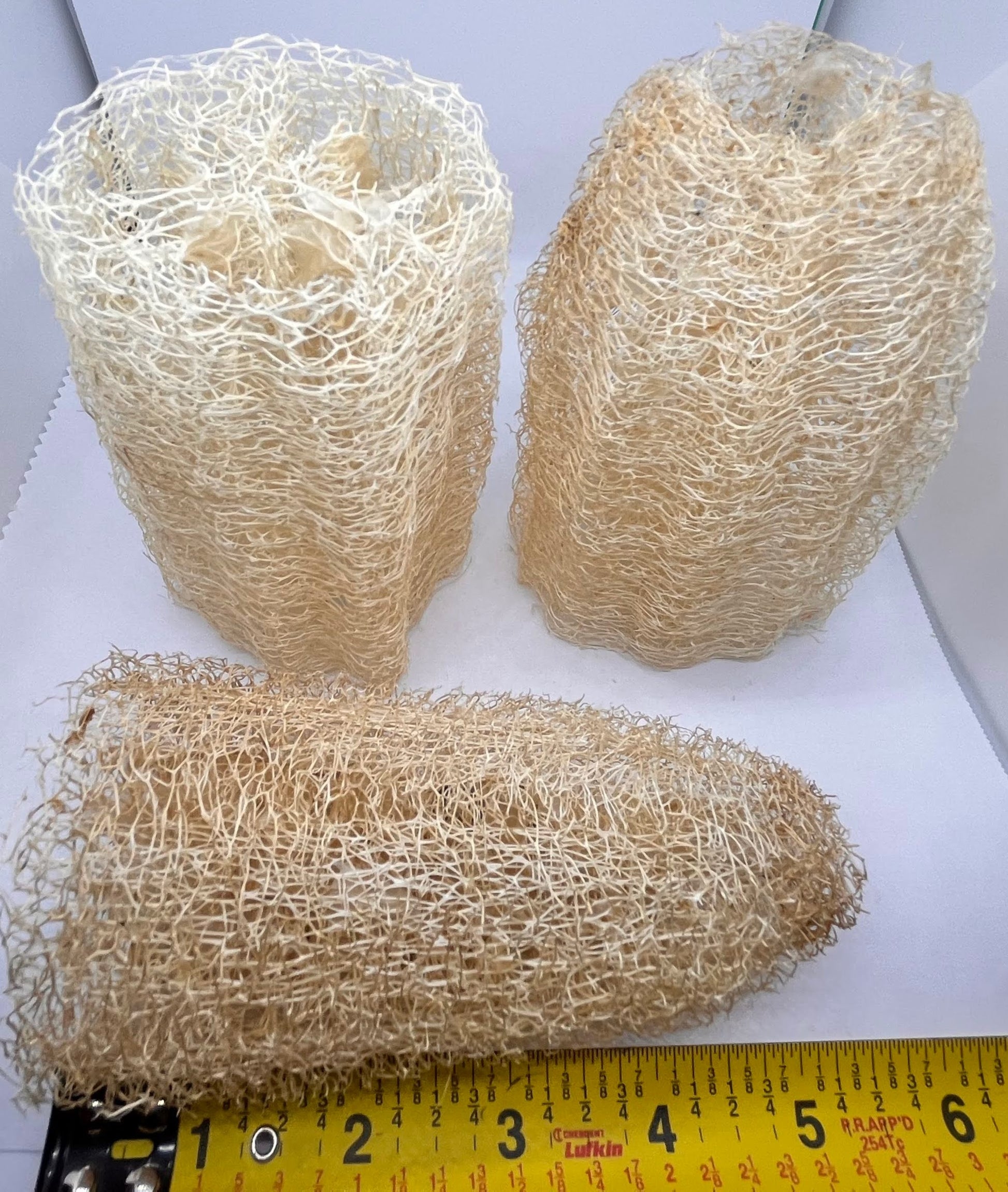 These are 5 inch long loofahs that are harvested off the vine after they have matured and dried. Sanitized and dried again.