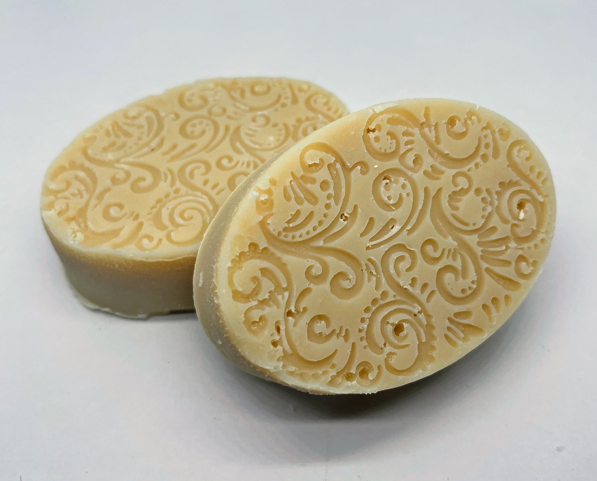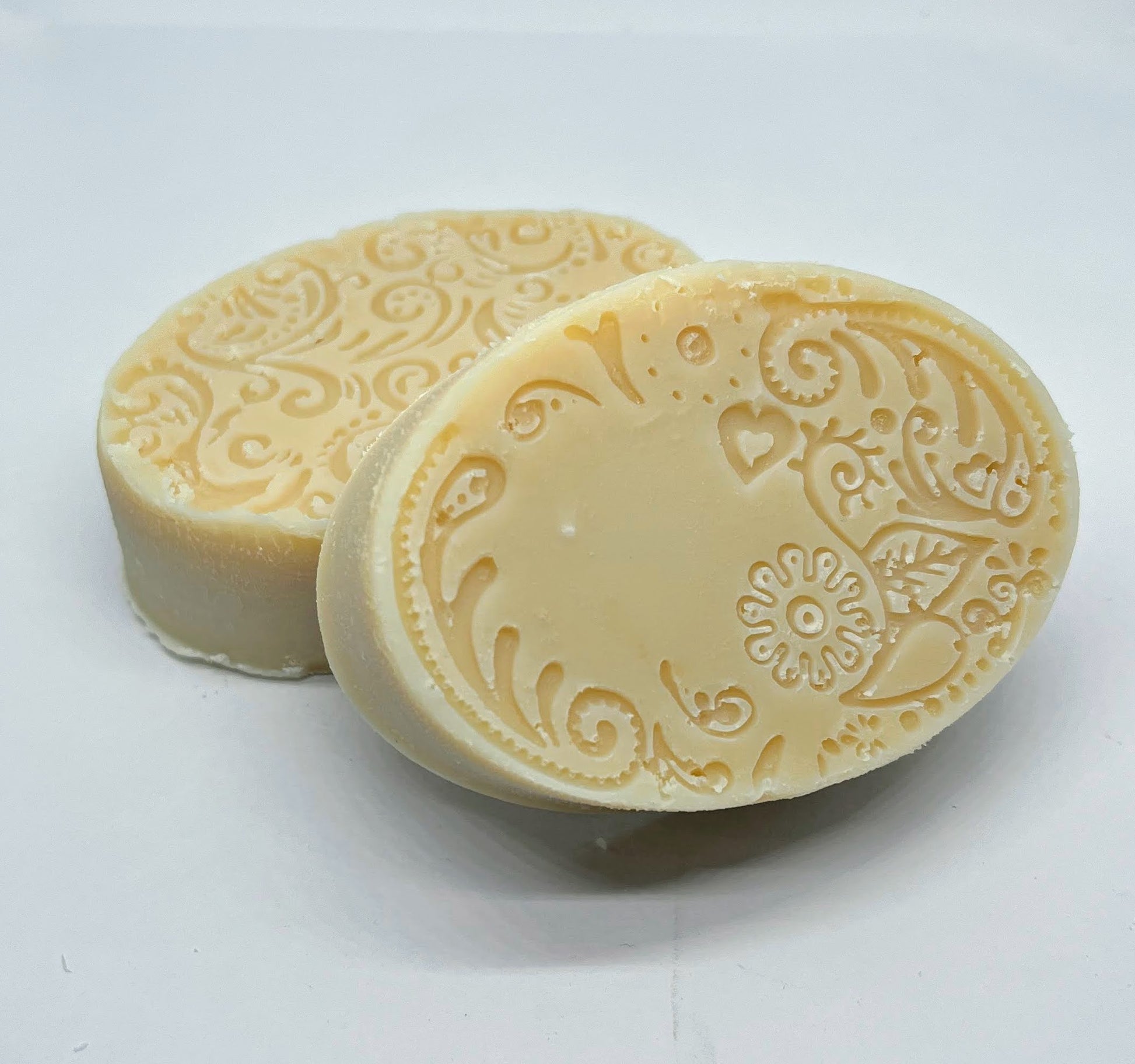 This is a 3oz oval hand soap with beautiful floral motifs. Non-scented. No artificial ingredients. Random assortment per piece.