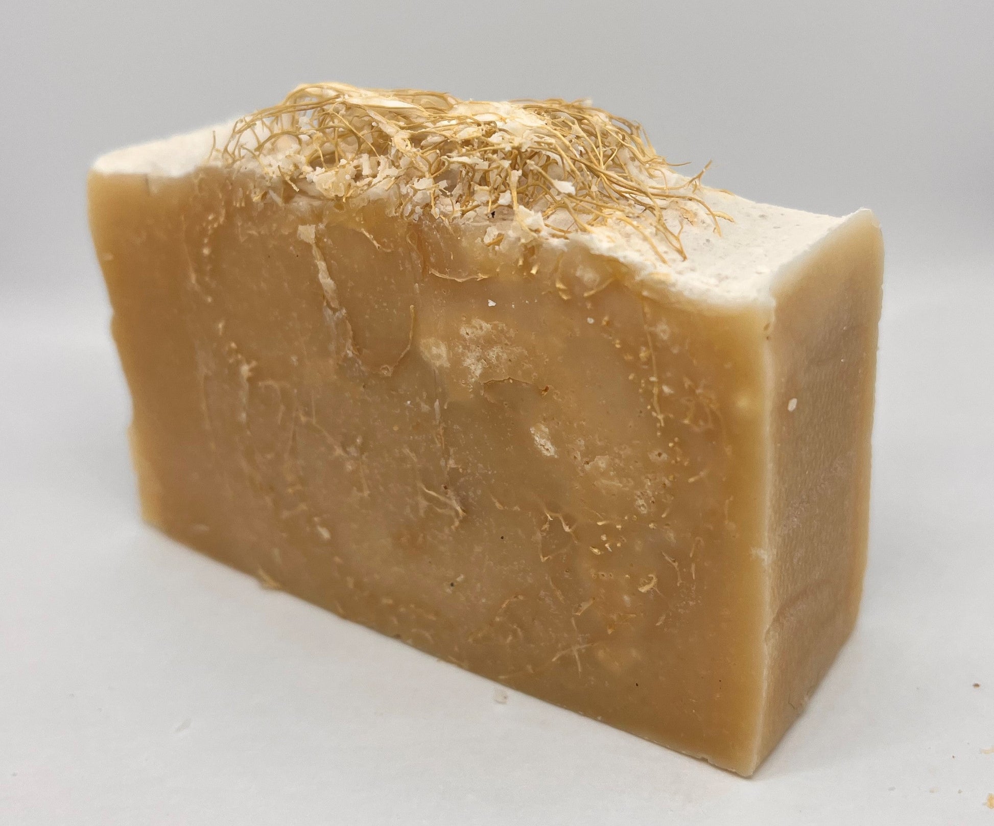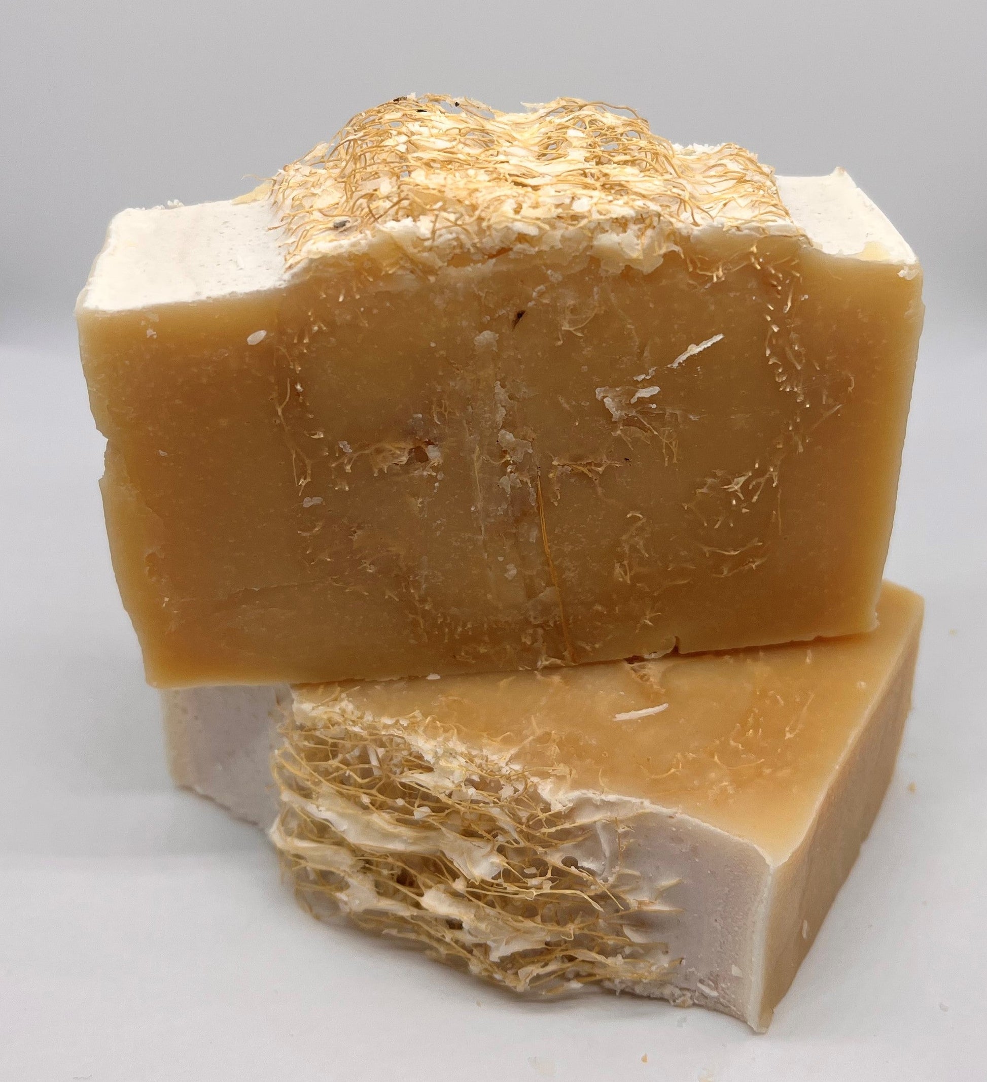 Ingredients: Locally grown loofah, Locally sourced goats milk, Olive Oil, Coconut Oil, and locally sourced lard.