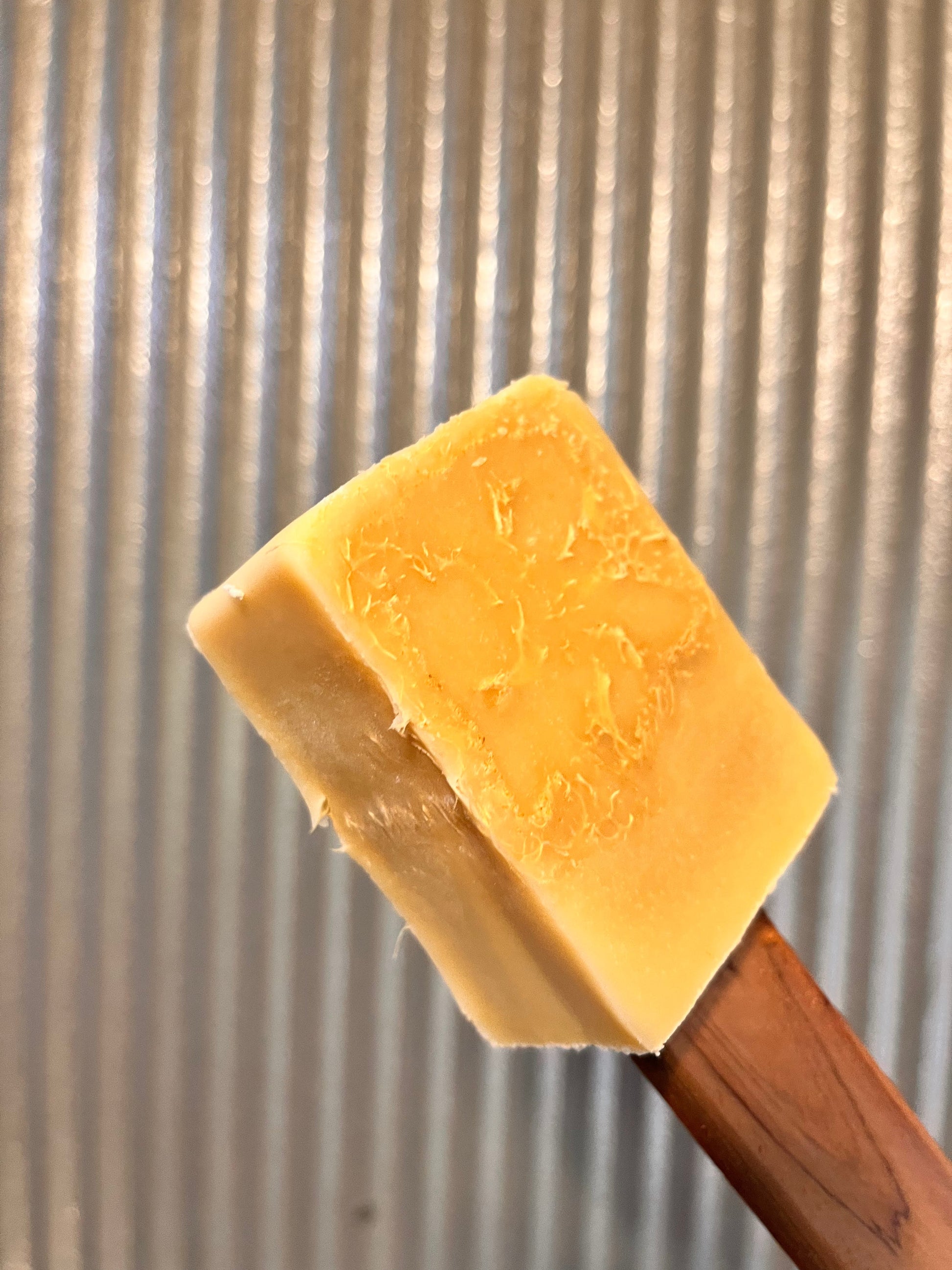 Ingredients: Locally grown red cedar, Locally grown loofah, Locally sourced goats milk, Olive Oil, Coconut Oil, and locally sourced lard, Lavender essential oil, lavender petals.