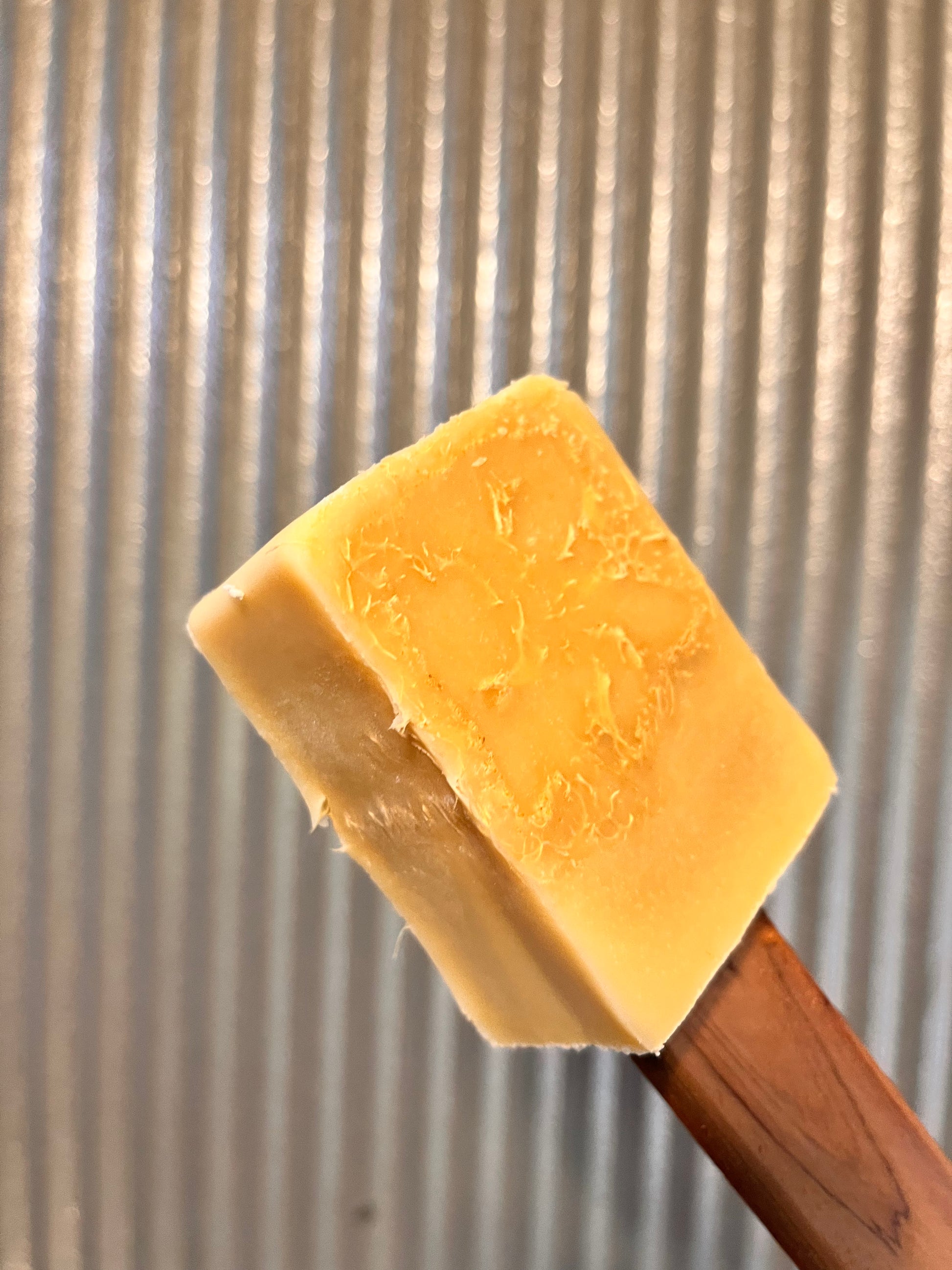Ingredients: Locally grown red cedar, Locally grown loofah, Locally sourced goats milk, Olive Oil, Coconut Oil, and locally sourced lard.