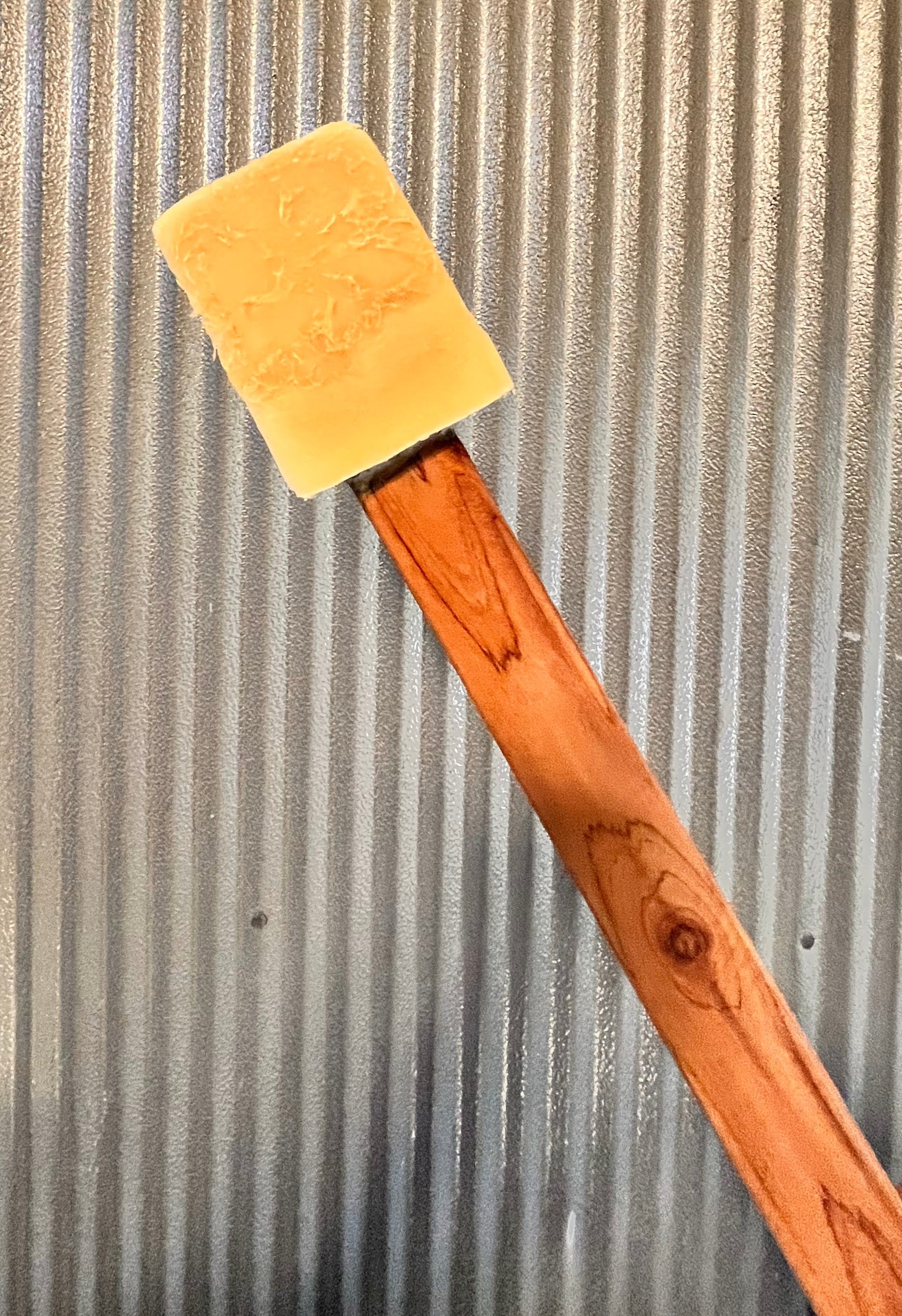 This is a handmade 4.5oz goats milk soap bar with embedded loofah, set on a handmade red cedar handle. Perfect for every day use and scrubbing your back and legs! Non-scented. No artificial ingredients. Great for exfoliating, and produces lots of lather when used with a washcloth.