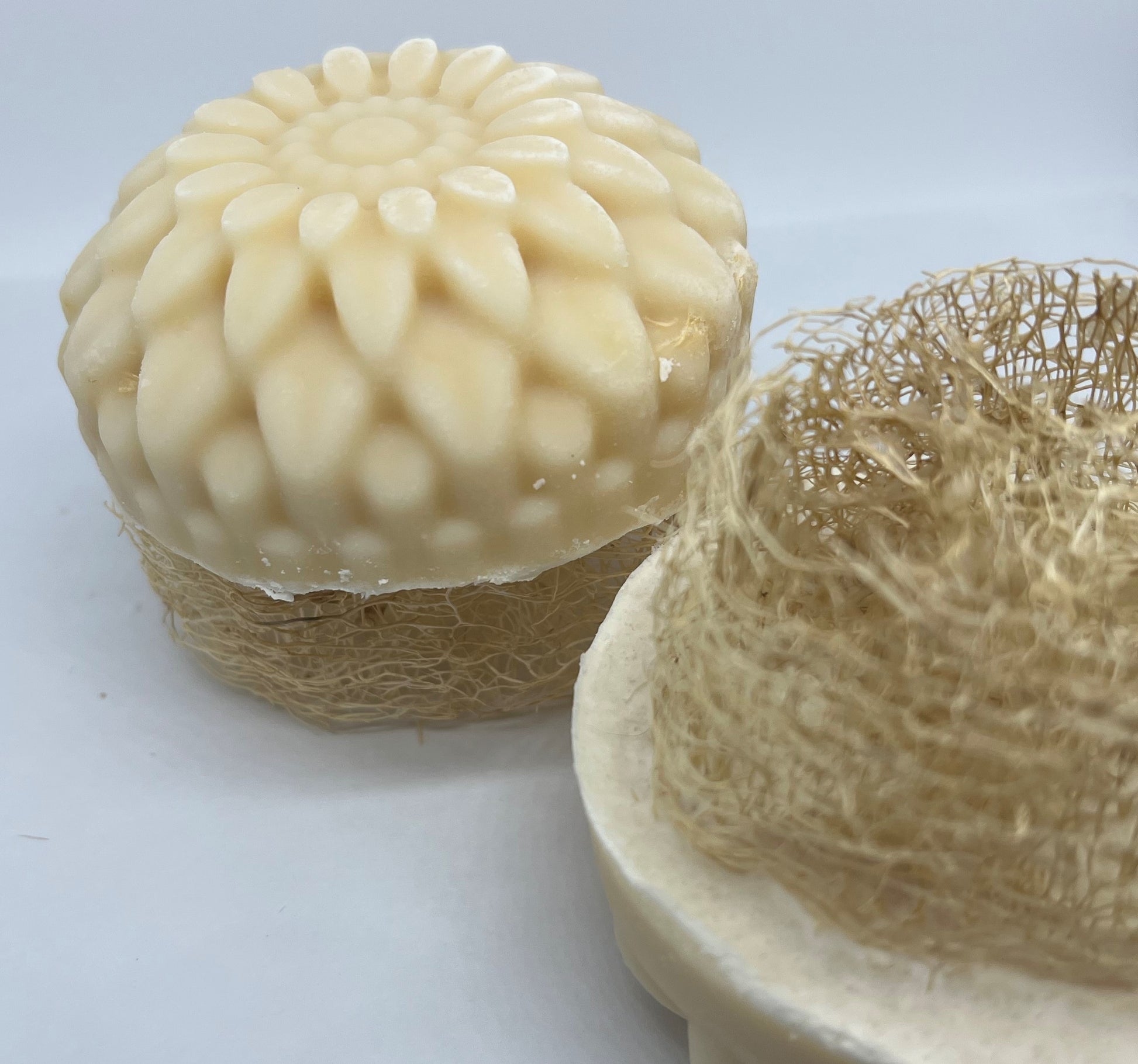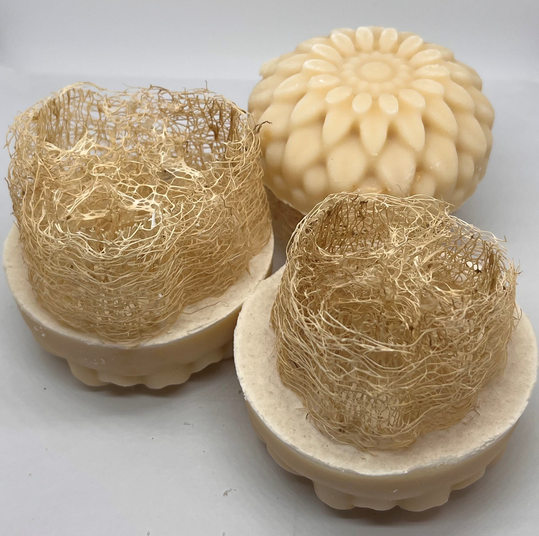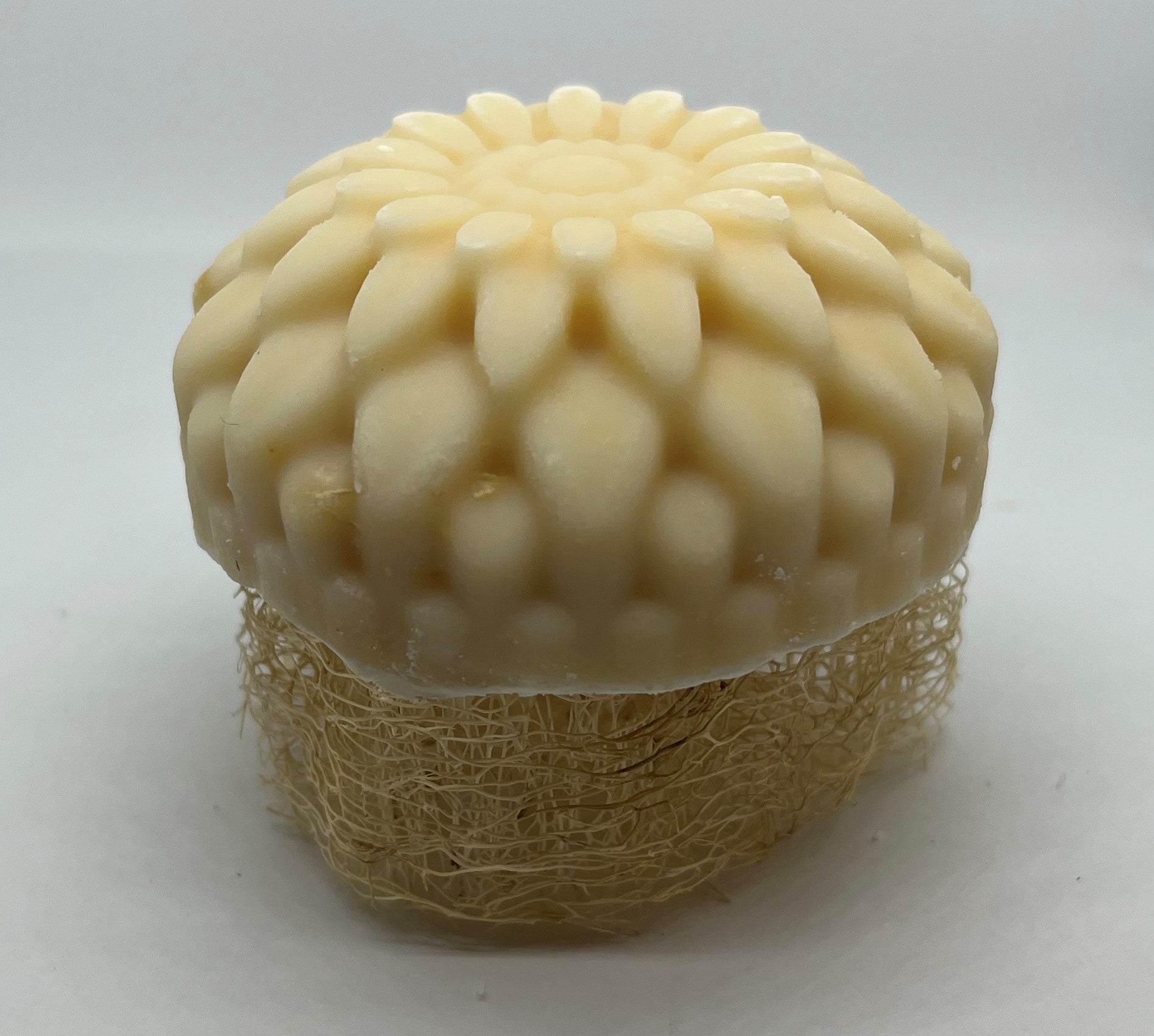 Beautiful 3.4oz sunflower, hibiscus or dahlia soap with embedded loofah. Scented with sugar and vanilla fragrance. These make great gifts and hospitality sets for bed and breakfasts. Comes individually wrapped. Random assortment. Price per 3.4oz piece.
