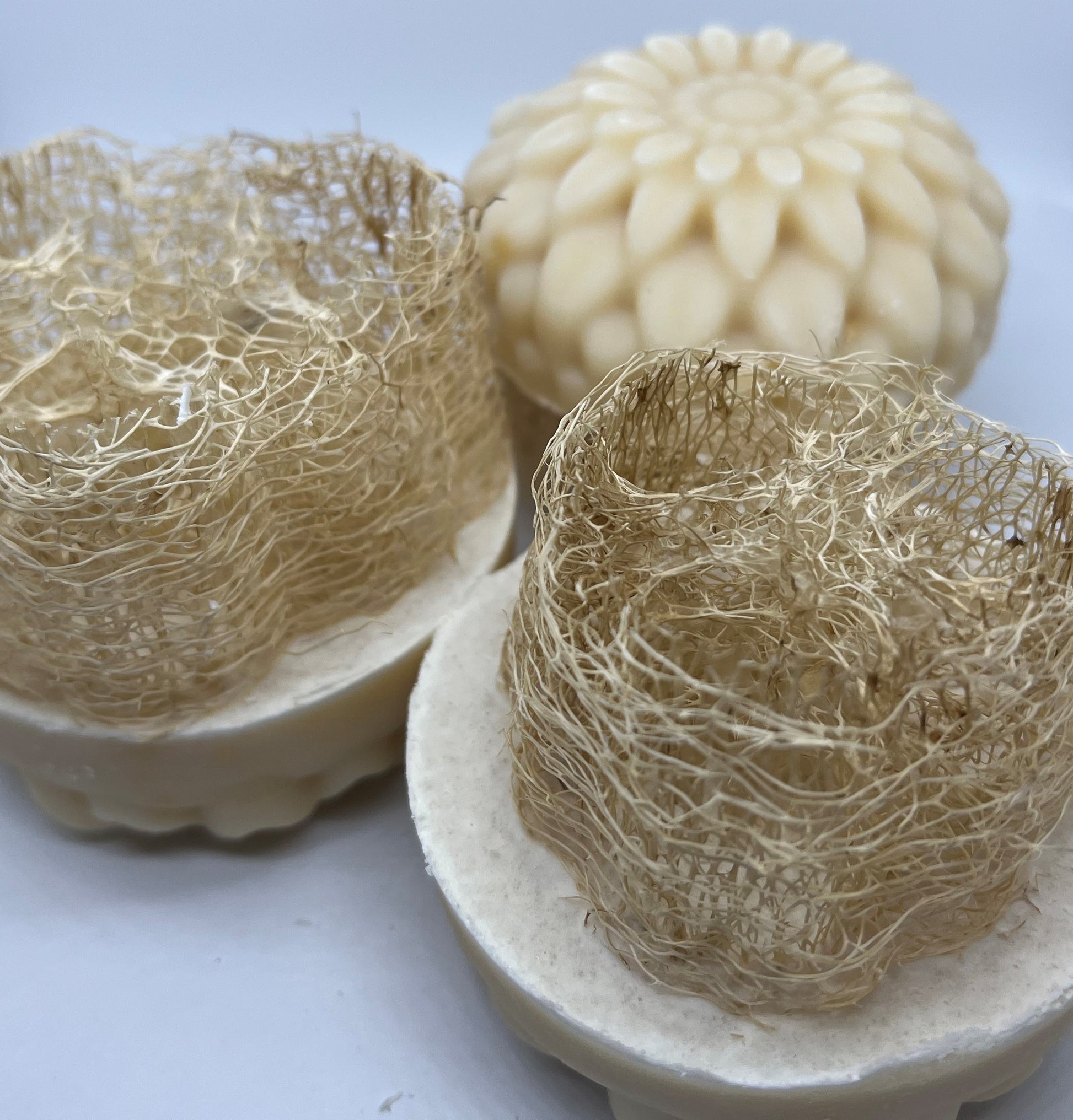 Ingredients: Locally sourced goats milk, Olive Oil, Coconut Oil, and locally sourced lard, Locally grown loofah, sugar and vanilla fragrance
